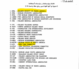 Those organizations are the Fiqh Council of North America, and the Islamic Society of North America, both named as Muslim Brotherhood organizations in their ” Explanatory Memorandum: The Strategic Goal for the Group in North America.